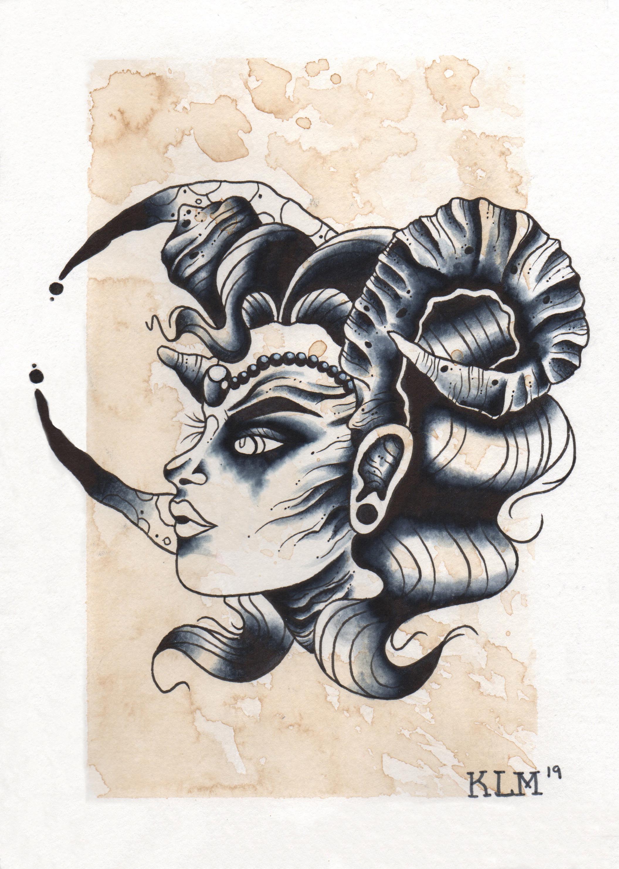Print reproduction of watercolor painting based on the astrological sign Aries. Size 8 x 10.
