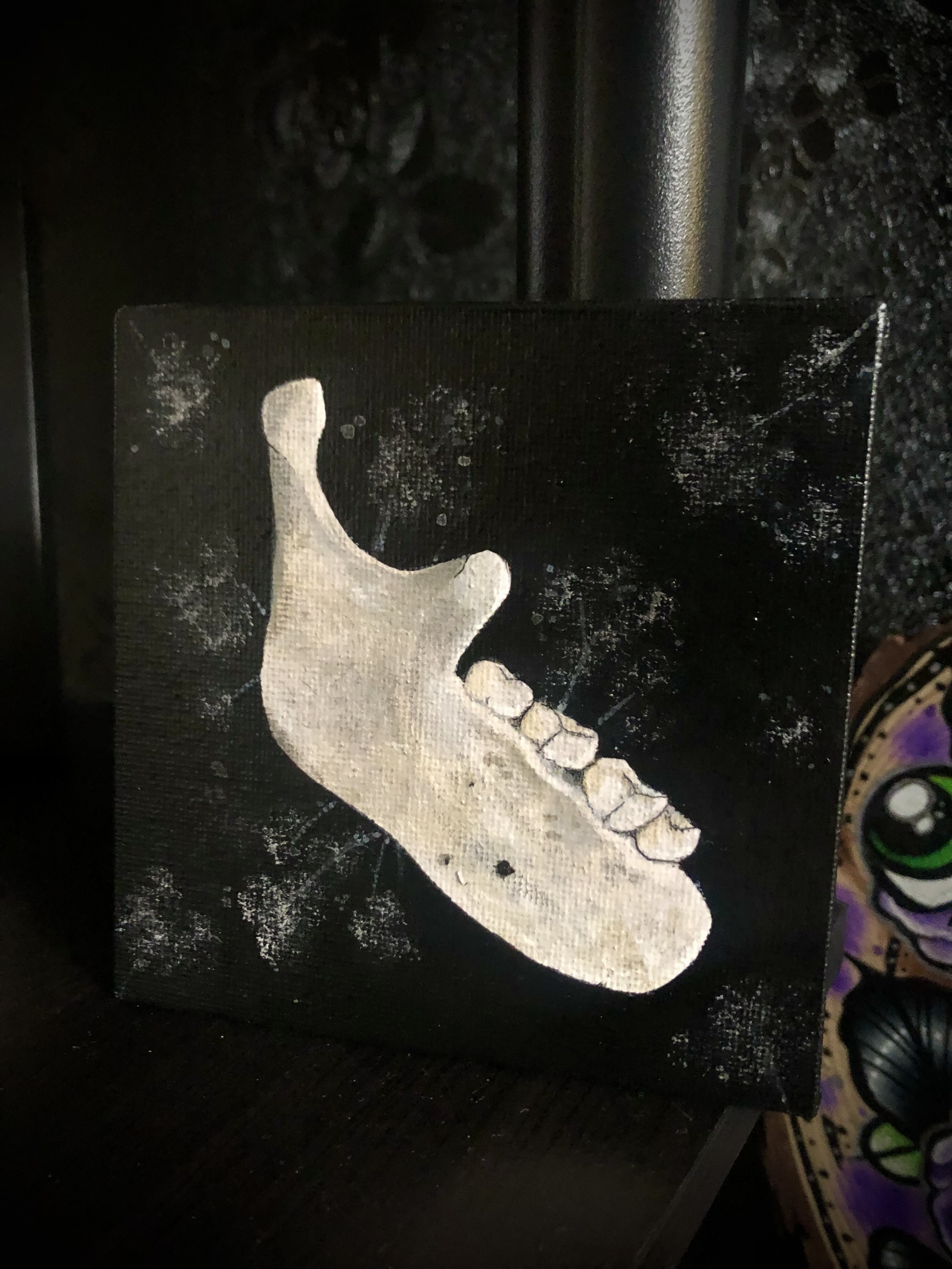 Acrylic painting of a human jaw. Unframed, 4’’ x 4’’. Original work, no prints, no reproductions.
